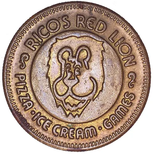 | Obverse lettering | RICO`S RED LION PIZZA . ICE CREAM. GAMES |