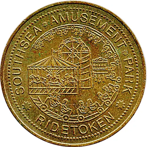 | Obverse lettering | SOUTHSEA AMUSEMENT PARK RIDETOKEN FUNACRES |