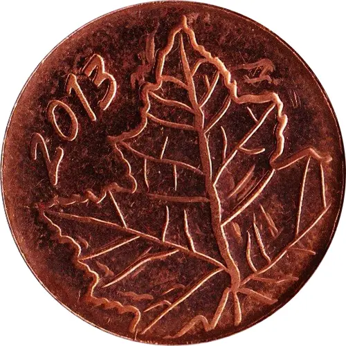 Incuse maple leaf with text `2013`. |