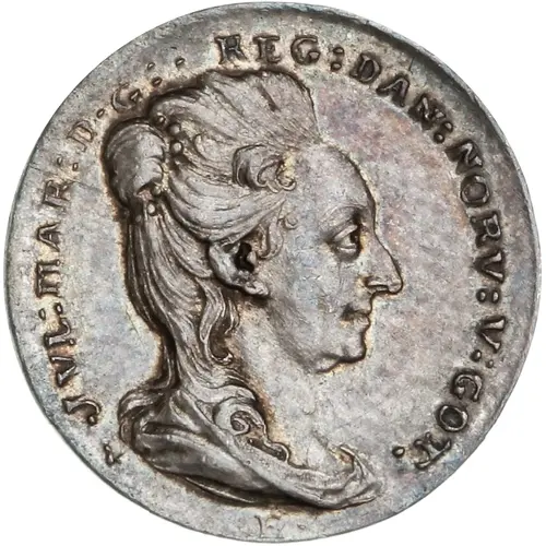 | Legenda awersu | JVL : MAR : D·G : REG : DAN : NORV : V : GOT · (Translation: Julianne Marie Queen of the Denmark, of Sweden of the Wends and the Goths by the Grace of God.) |