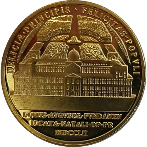 | Obverse lettering | DELICIÆ · PRINCIPIS · FELICITAS · POPVLI DOMVS · AVGVSTÆ · FVNDAMEN LOCATA · NATALI · OP · PR MDCCLII |