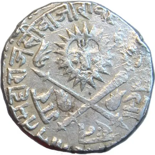 | Obverse description | Sun face above crossed swords and long flames, Inscription in Nagari |