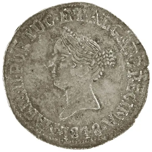 | Legenda awersu | MARIA II PORTUG ET ALGARB REGINA 1848 |