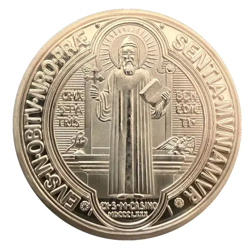 | Opis líce | EIVS·IN·OBITV·NRO·PRÆSENTIA·MVNIATVR CRUXS·PATRIS BENEDICTI· EX·S·CASINO MDCCCLXXX (Translation: May we be strengthened by his presence in the hour of our death. Cross of the holy father Benedictus Found out from the holy Casino mountain in 1880) |