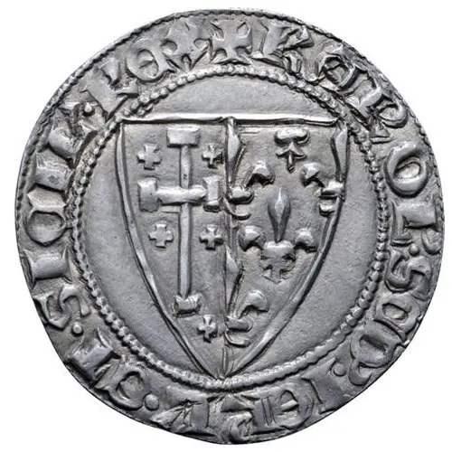 | Obverse description | Shield with arms of Jerusalem-Anjou |