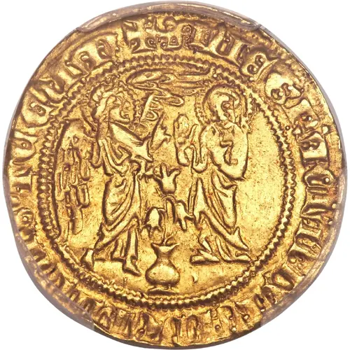 | Obverse description | Scene of the annunciation; fleur-de-lys between Gabriel and Mary. |