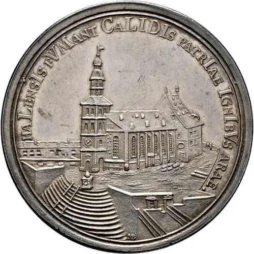| Obverse lettering | HALENSIS FVMANT CALIDIS PATRIAE IGNIBVS ARAE |