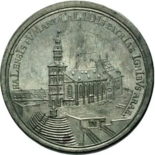 | Obverse lettering | HALENSIS FVMANT CALIDIS PATRIAE IGNIBVS ARAE |