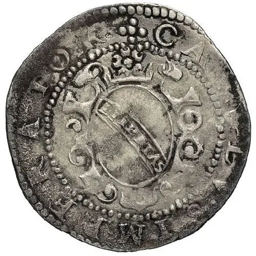 | Obverse description | Circular legend surrounded by greneti, oval shield with a diagonal band in a cartouche with scrolls and a rosette above. |