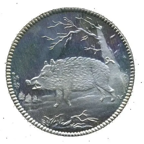 | Obverse description | Tusker to the left, tree to the right |