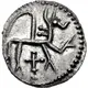 | Reverse description | Stylised stag right raising foreleg, small cross pommée below. |