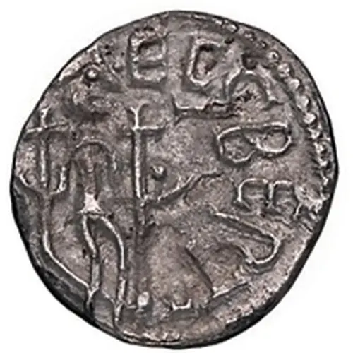 | Obverse description | Mitred figure standing right holding two long crosses. |