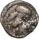 | 表面の説明 | Diademed bust left, exaggerated features, with striated hair and beaded neck, pellets before and in field, cross below, beaded border. |