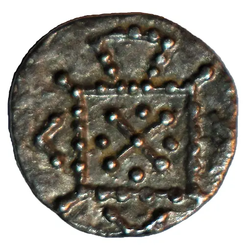 | Obverse description | Linear saltire with pellet ends, in beaded standard, pellet in each angle, tufa above, chevrons at other sides, diagonals to corners. |