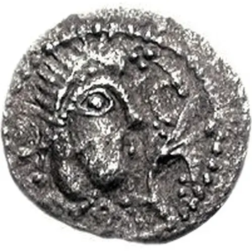 | Obverse description | Crude diademed and draped bust right with floral scroll before |