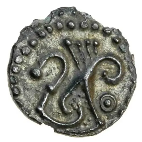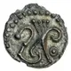 | Obverse description | Stylised wolf head right, biting writhing serpent. |