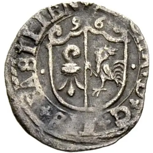 | Obverse description | Two-fold arms with two digit date above within circle. Pellets in fields left and right of the coat of arms. |
