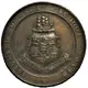 The school crest with its Latin motto in a ribbon. The name of the engraver on the left under the motto and the name of the Mint at right. |