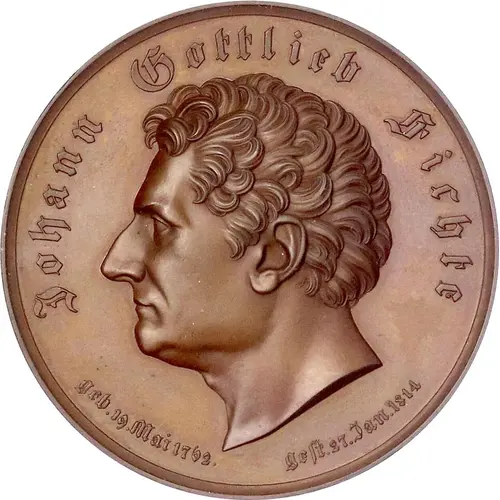 | Obverse lettering | Johann Gottlieb Fichte geb. 19. Mai 1762 . Gest . 27. Jan. 1814 |