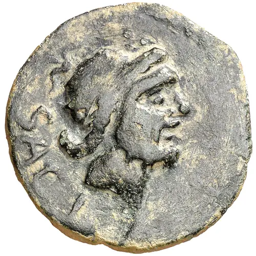 | Description de l’avers | Bearded head facing right, with hair ending in tail. Latin legend to the left. |