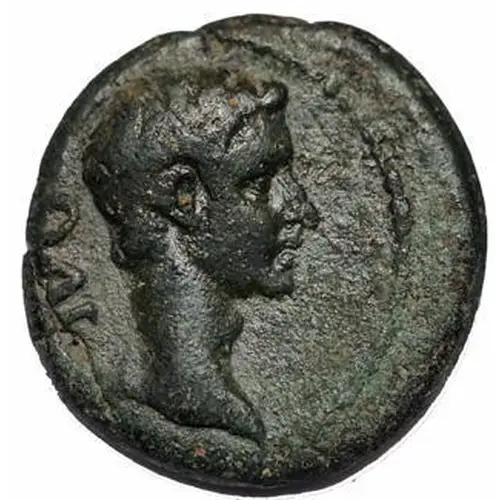Описание аверса Philippi mint in Macedonia, frequently considered as Greek coinage Augustus bareheaded facing right