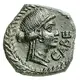 Head of Apollo, right; with inscription in a wreath of myrtle.