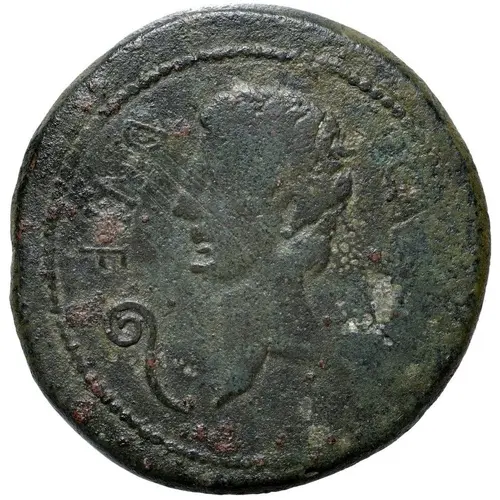 | Popis líce | Bare head of Augustus left, litus in front. |