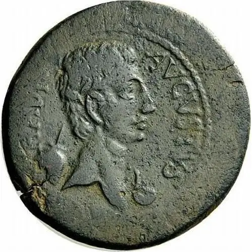 | Descripción del anverso | Bare head of Augustus, right; to left apex, to right, simpulum. |