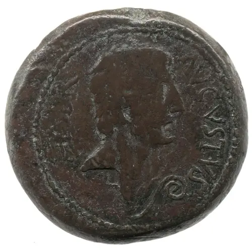 | Reverse description | Bare heads of Gaius and Lucius Caesar face to face. |