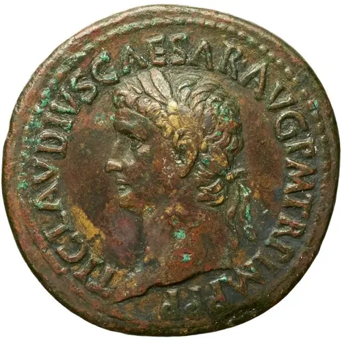 | Opis líce | TI CLAVDIVS CAESAR AVG P M TR P IMP P P (Translation: Tiberius Claudius Caesar Augustus, Pontifex Maximus, Tribunicia Potestate, Imperator, Pater Patriae. Tiberius Claudius Caesar, emperor (Augustus), high priest, holder of tribunician power, supreme commander (Imperator), father of the nation.) |