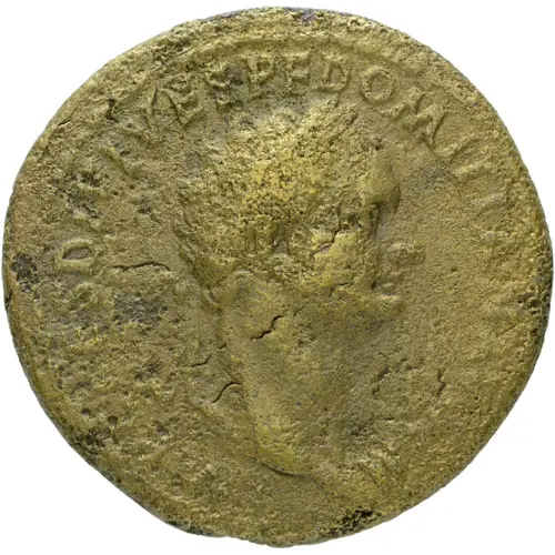 | Obverse lettering | IMP CAES DIVI VESP F DOMITIAN AVG P M (Translation: Imperator Caesar, Divi Vespasiani Filius, Domitianus, Augustus, Pontifex Maximus. Supreme commander (Imperator), Caesar, son of the divine Vespasianus, Domitian, emperor (Augustus), high priest.) |