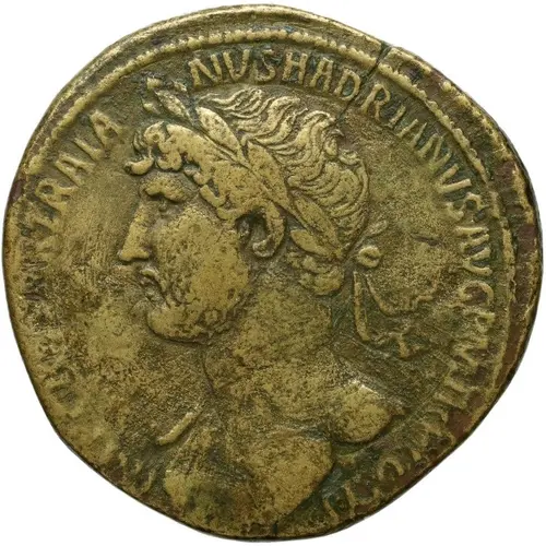 | Obverse description | Bust of Hadrian, laureate, bare chest, traces of drapery on far shoulder usually visible, left. |