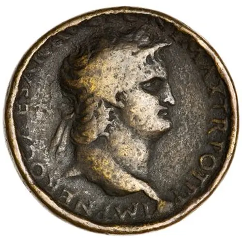 | Ön yüz lejandı | IMP NERO CAESAR AVG PONT MAX TR POT P P (Translation: Imperator Nero Caesar Augustus, Pontifex Maximus, Tribunicia Potestas, Pater Patriae. Supreme commander (Imperator) Nero Caesar, emperor (Augustus), high priest, tribunician power, father of the country.) |