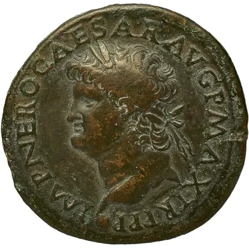 | Obverse lettering | IMP NERO CAESAR AVG P MAX TR P P P (Translation: Imperator Nero Caesar Augustus, Pontifex Maximus, Tribunicia Potestas, Pater Patriae. Supreme commander (Imperator) Nero Caesar, emperor (Augustus), high priest, tribunician power, father of the country.) |