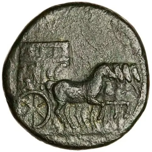 | Descrizione del dritto | Quadriga right, ornamented with trophy, Victory and trophy, and captive. |