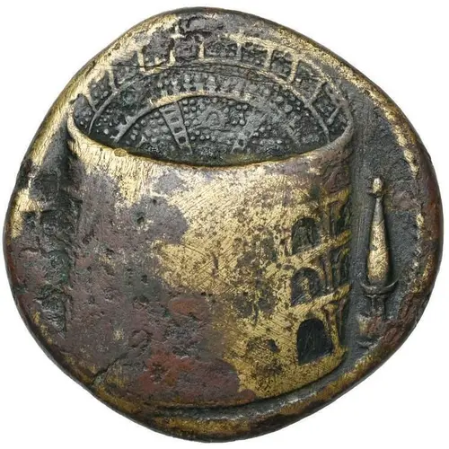 | Obverse description | Colosseum; Meta sudans right; Porticoed building left. |