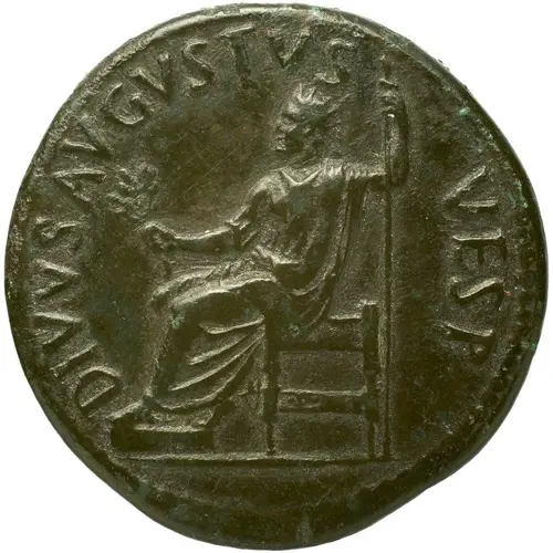 | Mô tả mặt trước | Divus Vespasian seated left, holding branch and sceptre. |