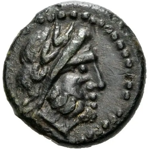 | Aversbeschreibung | Head of Zeus wearing a laurel wreath to right. |