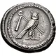 | Reversbeschreibung | Owl standing right, head facing; crook and flail diagonally in background. |