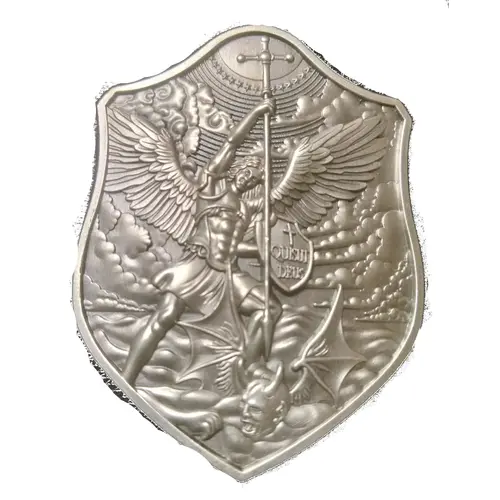 | Obverse description | A Winged Archangel Michael stands over Satan. Holding a spear and Heraldic Shield. Heavens in the background. |