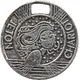 | Obverse description | Portrait of a woman inscribed in a circle filled with dots with inscriptions on each side. A slot on the upper part allows the insertion of a key ring. |