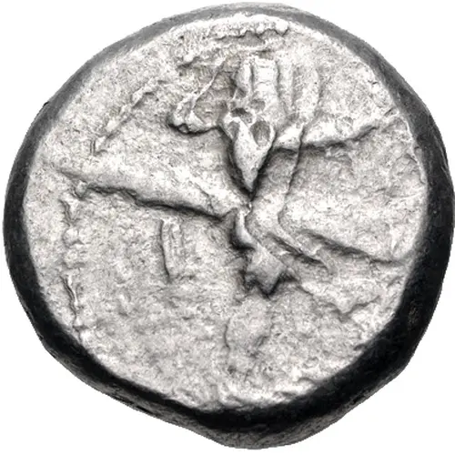 | توضیحات پشت سکه | Bull standing right and all within dotted square in incuse square |