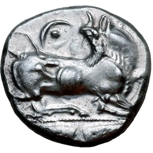 | توضیحات روی سکه | Man-headed bull (river god Bokaros) reclining to right, head turned to left |