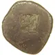 Seated sphinx right, with curled wing, left forefoot raised; behind, circle of dots with pellet in center.