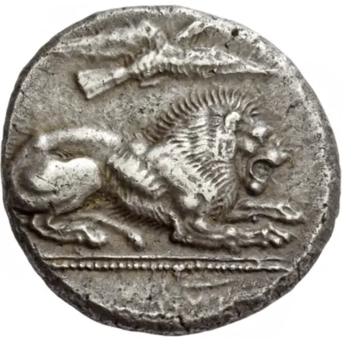 | Reverse description | Forepart of lion facing right with its mouth open. All within incuse square |