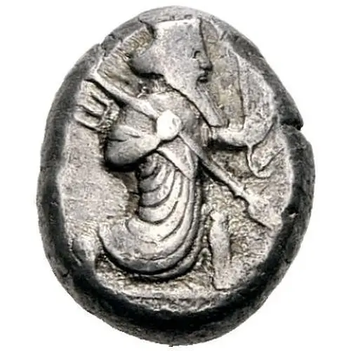 | Obverse description | Persian king or hero right in kneeling position with quiver, holding a spear in his right hand and the bow with his left. |