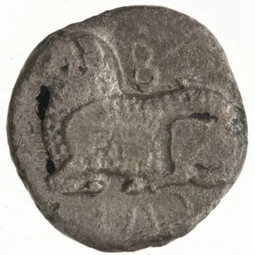 توضیحات روی سکه Recumbent ram facing left. Cypriot syllabic inscription above and below the ram. Beaded ring around it.