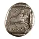 | Reverse description | Female figure (probably Aphrodite) riding a bull, both facing right and in an incuse square. Syllabic script over and under the figure. |