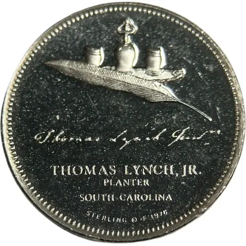 | Obverse lettering | Thomas Lynch Jr THOMAS LYNCH, JR. PLANTER SOUTH CAROLINA STERLING © FM 1976 |