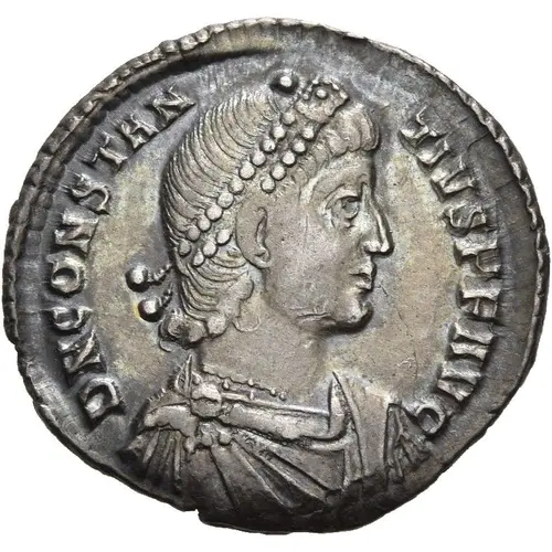 | Opis awersu | Bust of Constantius II, pearl-diademed, draped, cuirassed, right. |